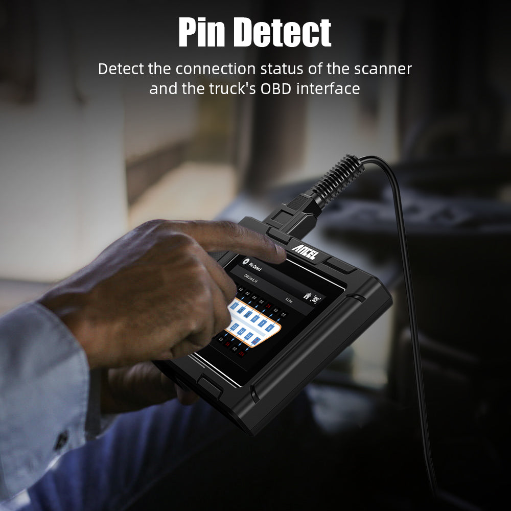 - Supports all-system diagnosis of heavy-duty trucks, including Engine, ABS, SRS(Airbag), Transmission, TPMS, EPS, Fuel System, Instrument Panel, Drive-train, Braking System, Headlamp Auto-leveling, BCM, Integrated Security System, Immobilizer, AT System, Meter System, Suspension System, Clutch System, Anti-theft devices, and more.