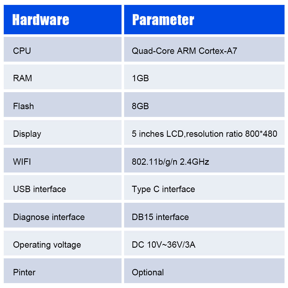 - With a clear operation interface, commercial vehicles can be classified according to vehicle information, which is more convenient to use. It also provides one-click upgrade, screenshot and activation functions, and can print diagnostic reports at any time. We also provide an official optional printer (see bundled product) that can be used for diagnostic data and report printing.