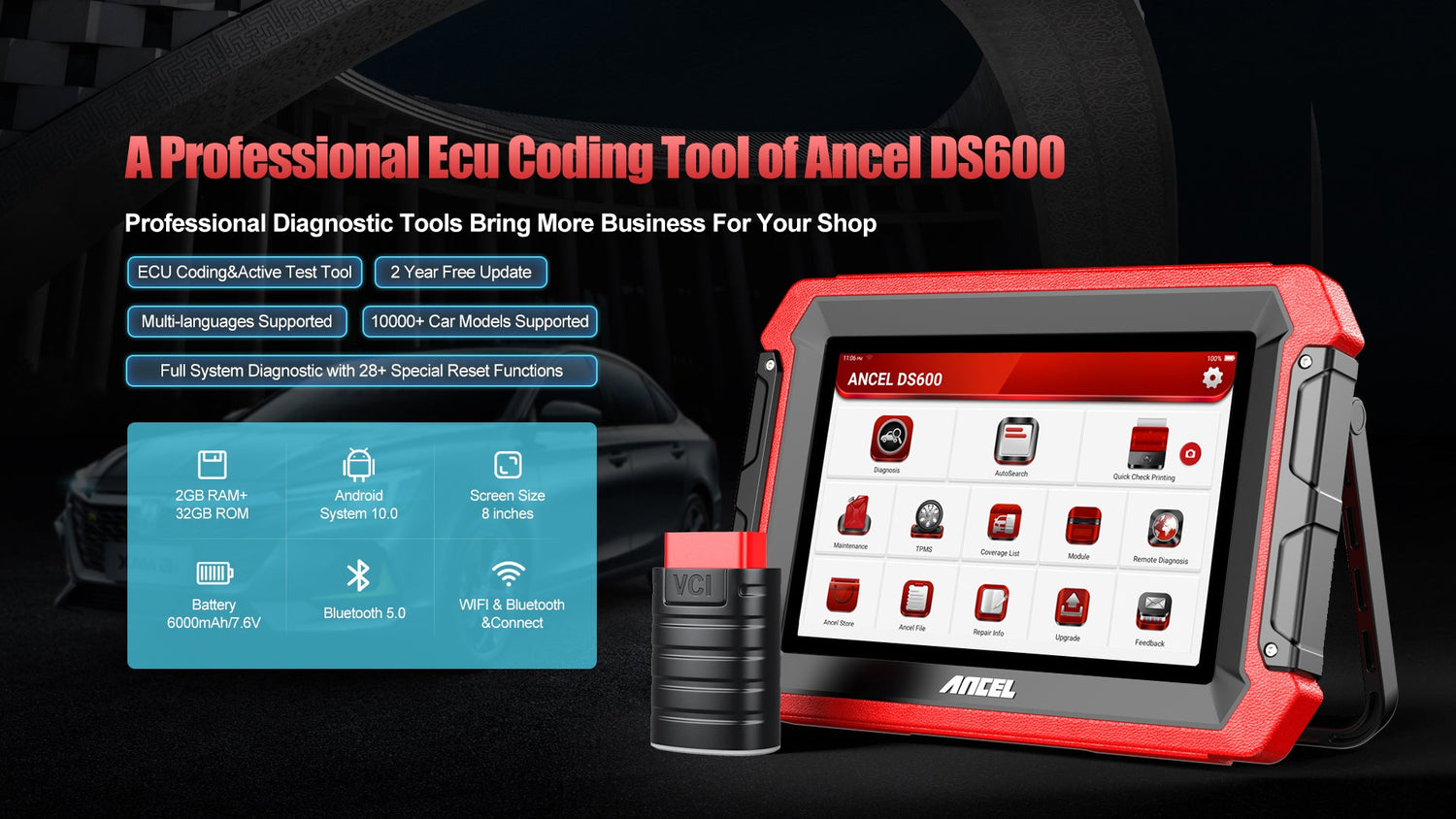 Professional Scan Tool Ancel DS600 Bi-directional ECU Coding 34+ Specials