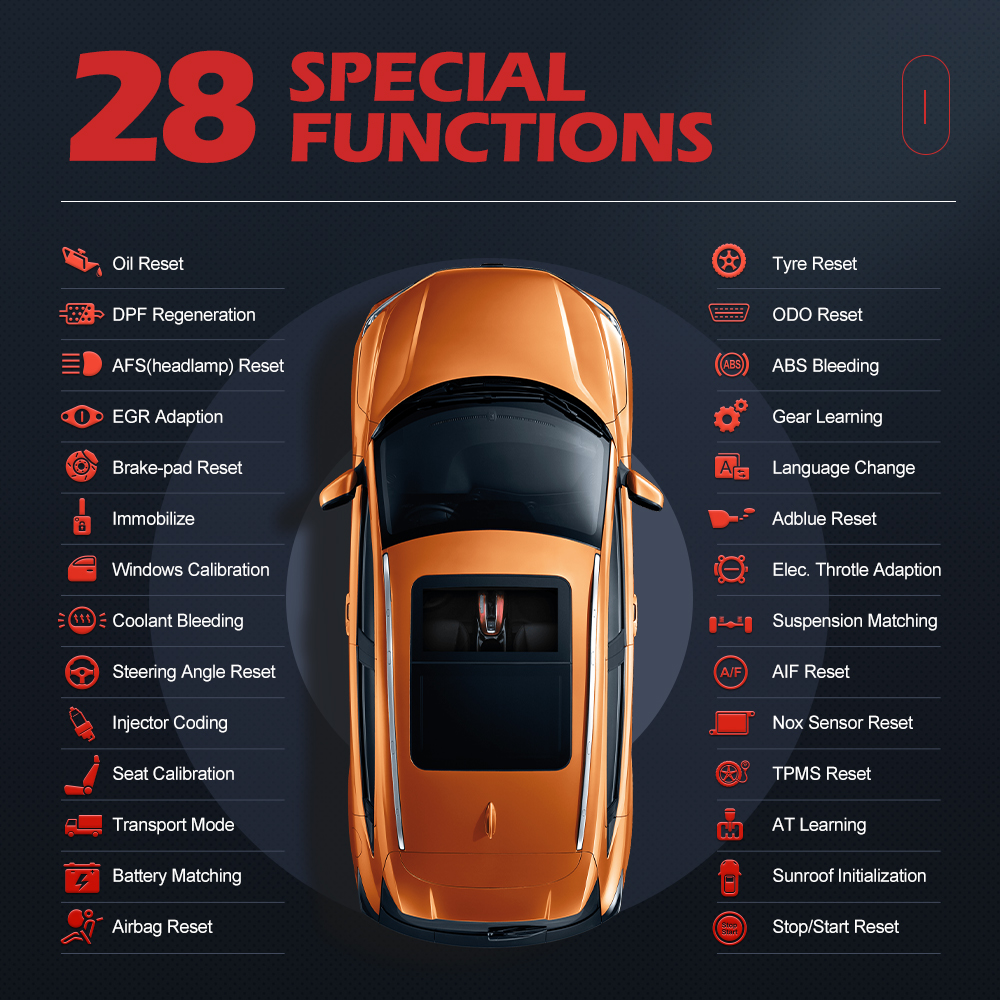 This function resets the airbag data to clear the airbag collision fault indicator.When the vehicle collides and the airbag deploys,the corresponding fault code of the colision data appears,the airbag indicator lights up,and the fault code can't be cleared.Since the data inside the airbag computor is disposable,it is required that all new accessories must be ewplaced,but after performing this function,the data of the airbag computer can be recovered and the fault code can be cleared,the airbag light will go out,and the airbag computer can continue to use.