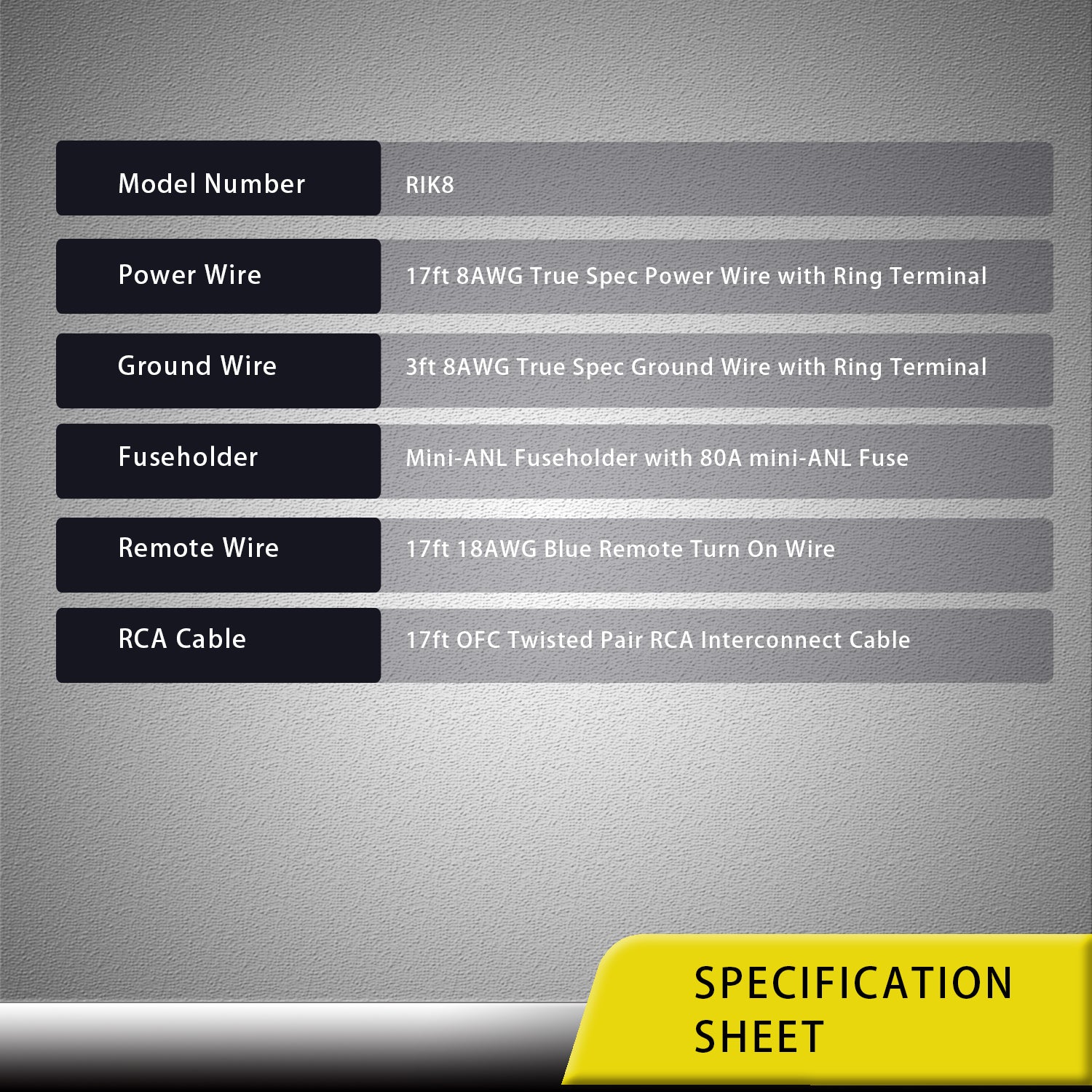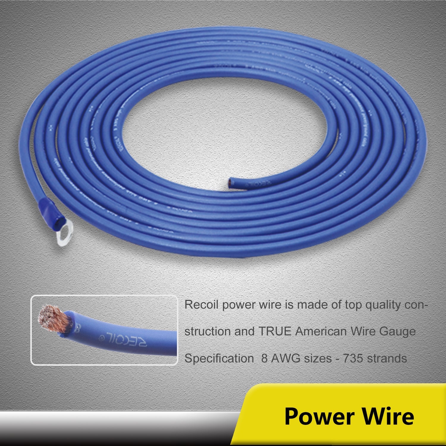 - Optimal Power Transfer: Includes a 17ft (5.5 meters) premium frosted blue 8 gauge CCA power wire with ring terminal, ensuring efficient power delivery to your audio components.
