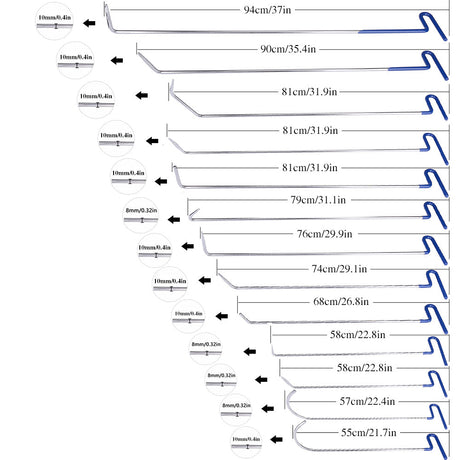 Super PDR 13 Pieces Heavy Duty Rods Paintless Dent Removal Tool Set