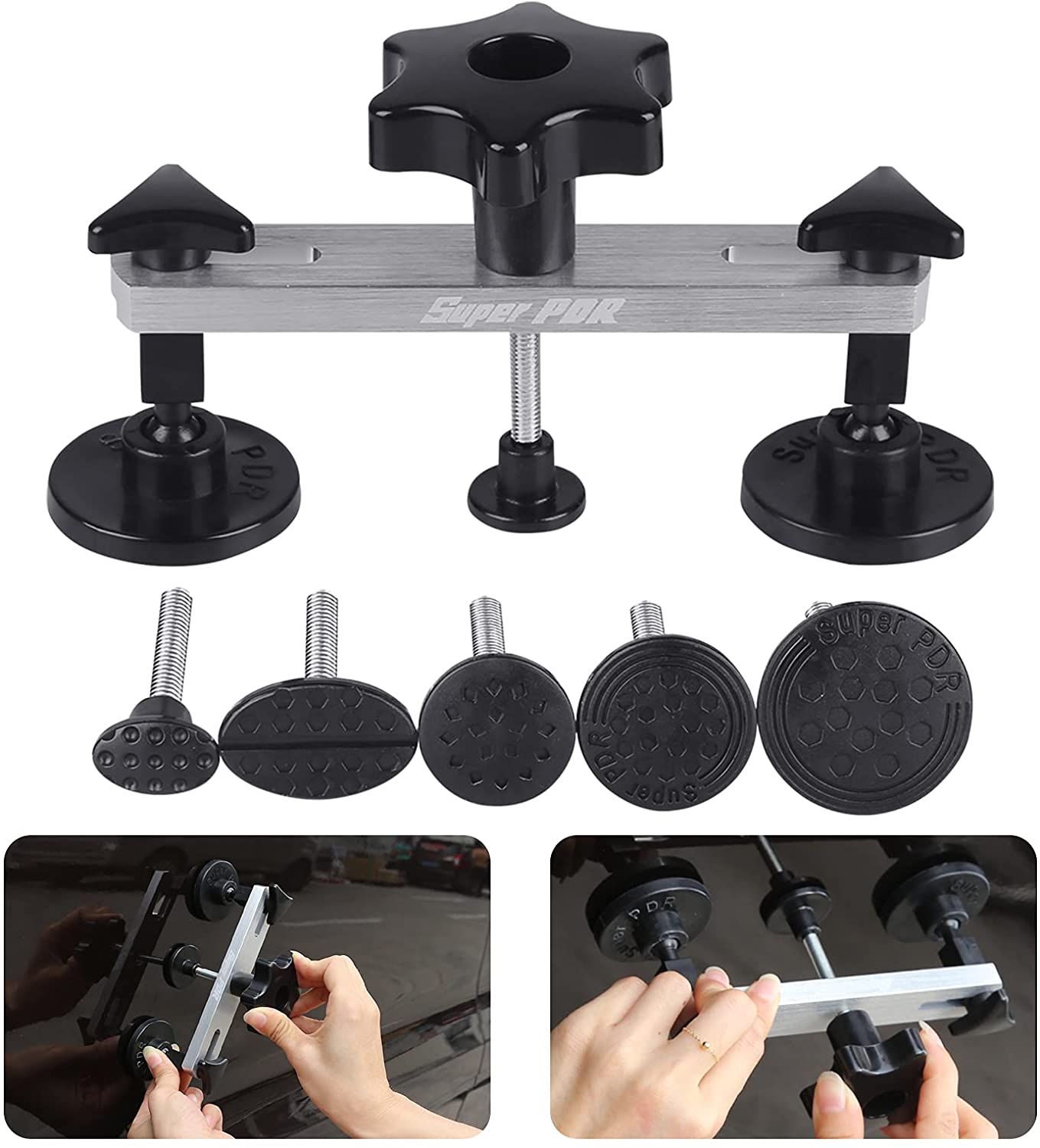 Black Dent Puller: Suitable for any auto dents, repair door dings, hail and other dents, with a unique can adjust the level and rotate the button to better fit the deep dents, efficiently and labour-saving.