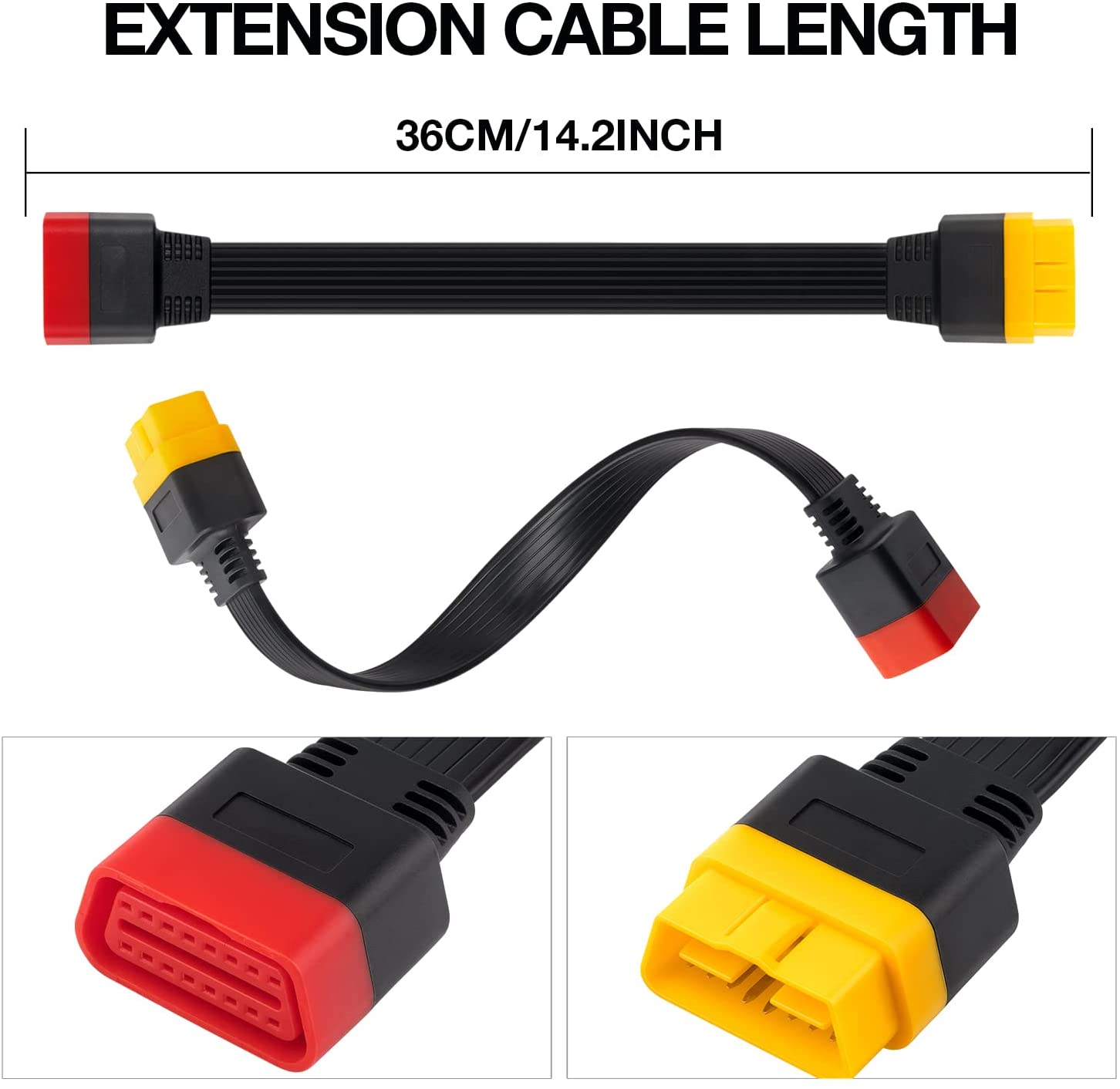 -ExtensionProtect the OBDII connectors of your car and device, and make the car's OBD2 connector easy to access by using. 36 long extension cable will not occupy the place, and can achieve the effect of extension.