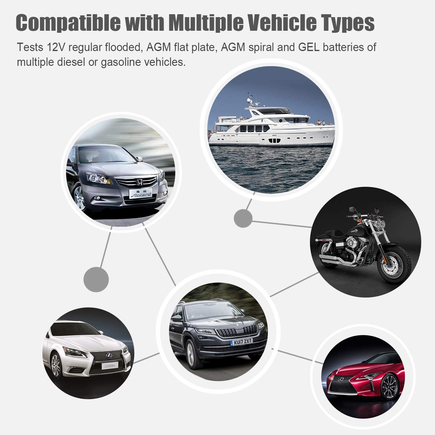 - Auto battery testers allow you to check battery condition of 12V 100-1100 CCA regular flooded, AGM flat plate, AGM spiral, as well as GEL batteries and give you an accurate test result in 3 seconds.