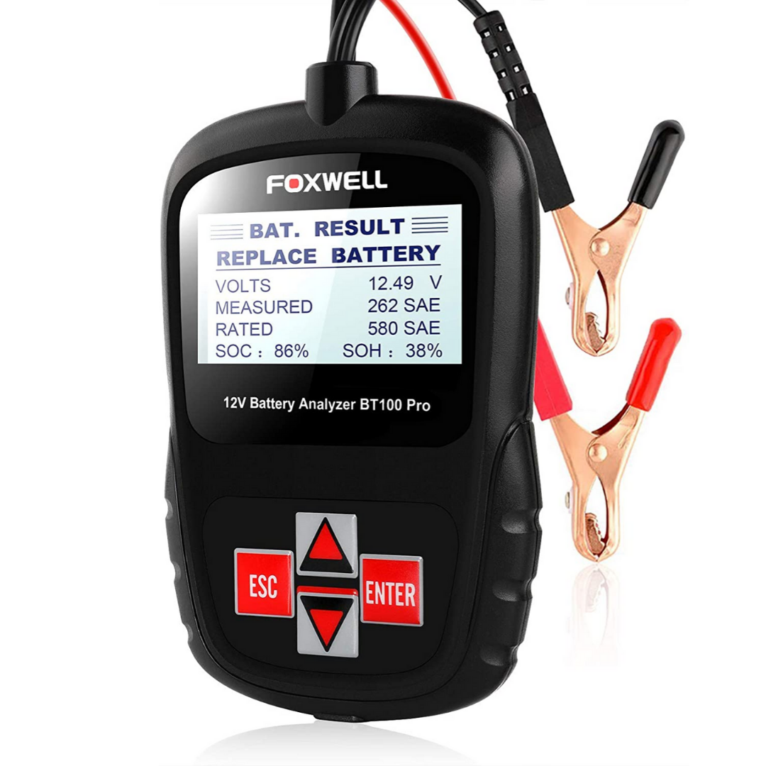 The latest BT100 12 Volt Battery Analyzer from Foxwell is dedicatedly developed to test 12V regular flooded, AGM flat plate, AGM spiral and gel batteries. It provides a quick, easy and affordable solution for technicians to view battery charging status, check battery health and detect faults.