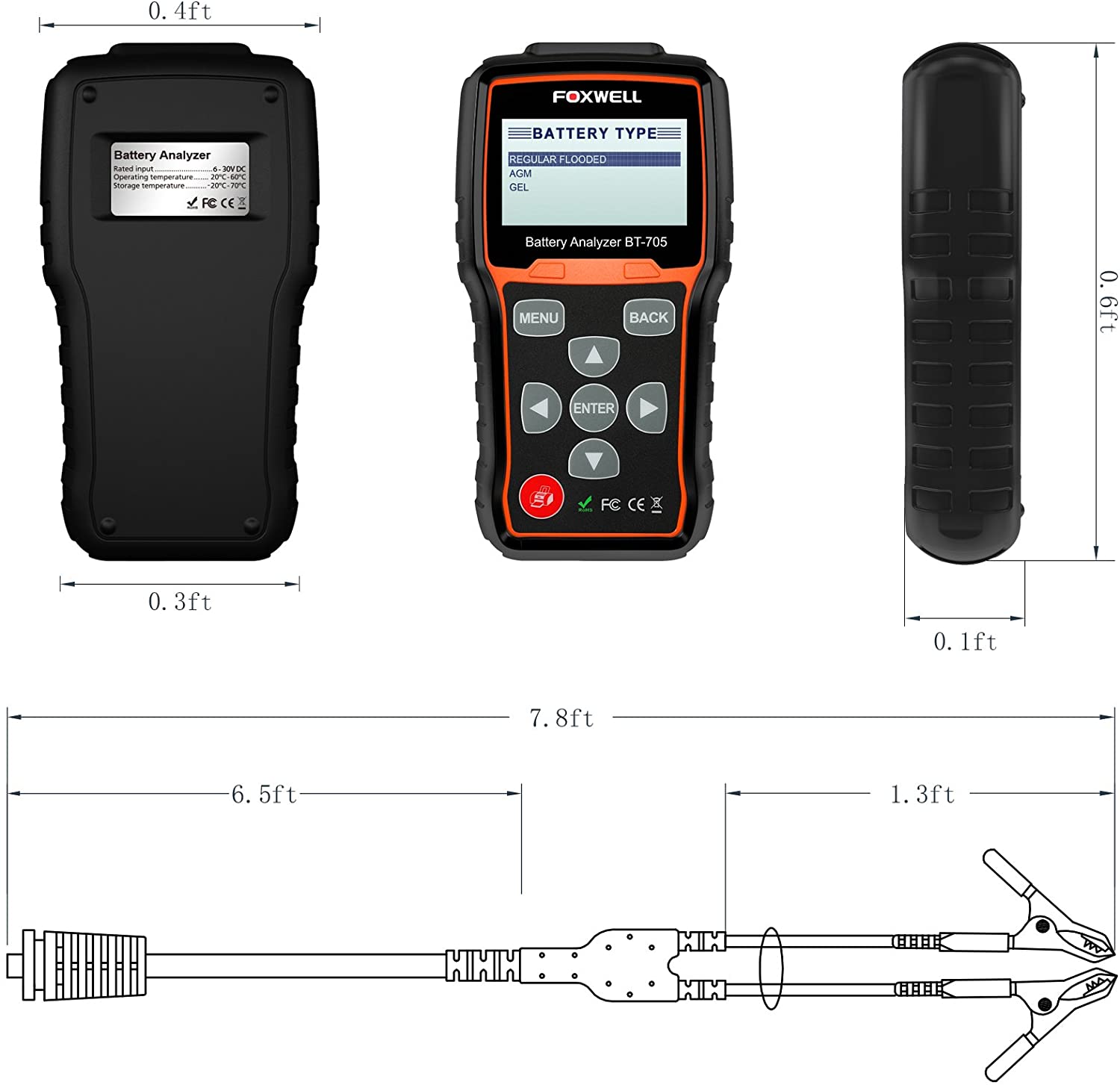 The latest BT-705 (100-2000CCA)Battery Analyzer form Foxwell is dedicatedly developed to test 12V regular flooded, AGM flat plate, AGM spiral and gel batteries and 12V & 24V starting and charging system. It provides a quick, easy and affordable solution for technicians to check battery health and detect faults of starting and charging system.