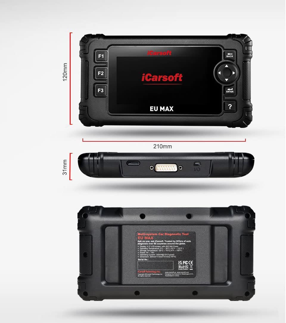 ICARSOFT EU MAX IS A PROFESSIONAL AND POWERFUL VEHICLE FAULT DIAGNOSIS TOOL FOR EUROPEAN VEHICLES DEVELOPED BY ICARSOFT TECHNOLOGY INC. WITH A 4.3" TFT LCD SCREEN AND WITH 800*480 PIXELS. TOGETHER WITH THE ABILITY TO QUICKLY READ AND CLEAR DTCS FOR ALL AVAILABLE MODULES OF THE MAJORITY OF THE EUPOPEAN MAKES AND MODELS, EUMAX PROVIDES YOU WITH SUPERIOR SPECIAL FUNCTIONS. IT FEATURES FULL ECU DIAGNOSIS OF MOST VEHICLE BRANDS AND TEST MODES MAINLY INCLUDE: CANBUS, ISO9141, KWP2000, AND J1850 ETC.