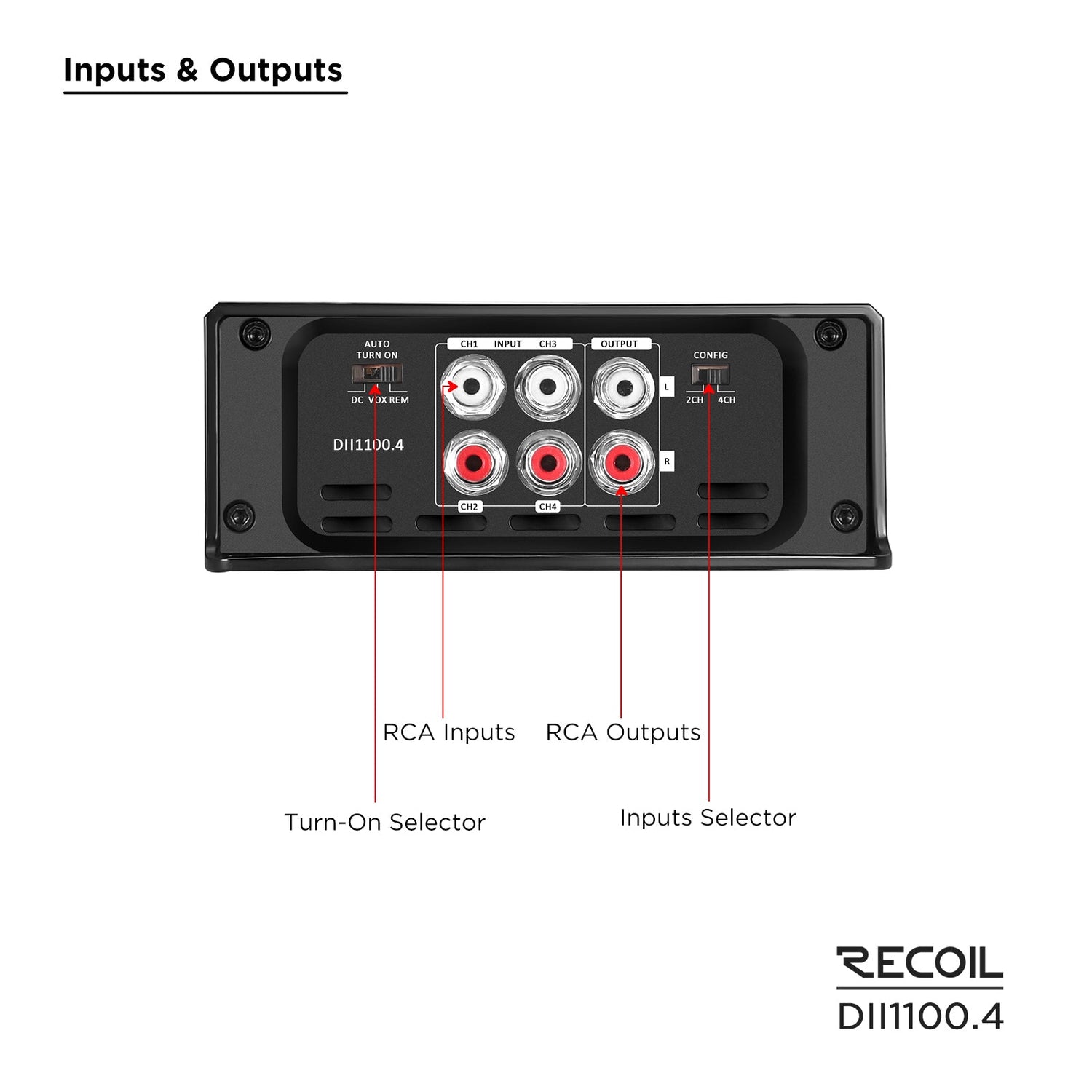 RECOIL DII1100.4 1100 WATTS CLASS-D 4-CHANNEL CAR AMPLIFIER