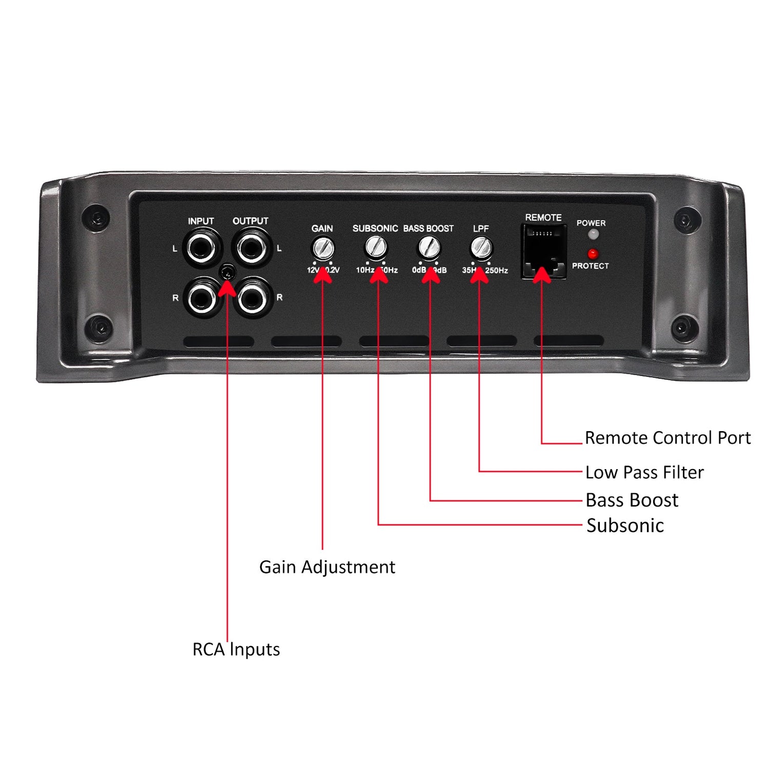 This Recoil mono amplifier comes with a convenient bass remote control, letting you adjust bass levels with ease. The built-in user control panel offers adjustable settings for bass EQ, gain control, low-pass filter, and a subsonic filter, ensuring optimal sound performance tailored to your preferences.