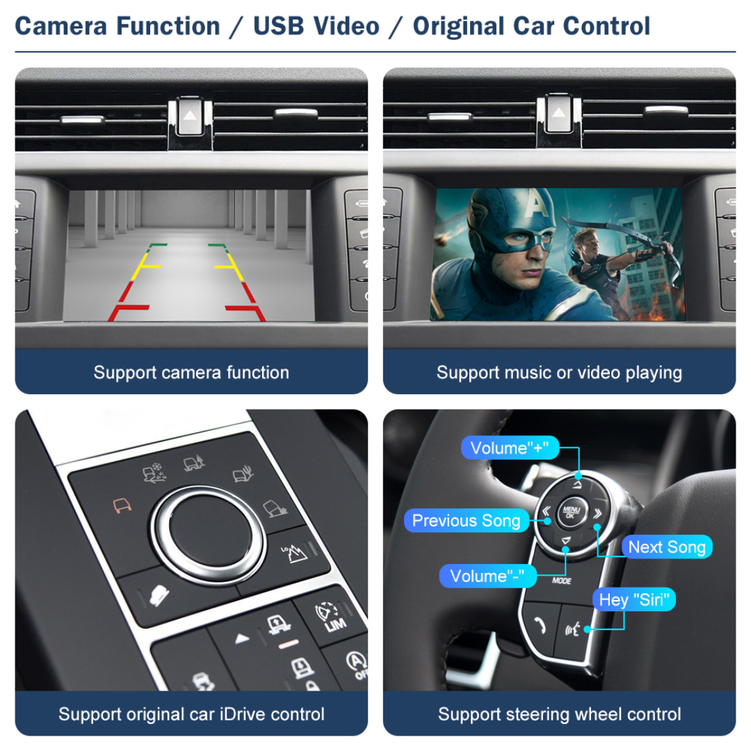 It plugs in behind the OEM screen, giving you wireless & wired Apple CarPlay and Android Auto while keeping your original Land Rover/Jaguar menus, radio and vehicle settings.
