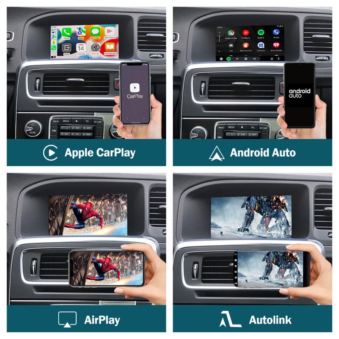 It plugs in behind the OEM screen, giving you wireless & wired Apple CarPlay and Android Auto while keeping your original Volvo menus, radio and vehicle settings.