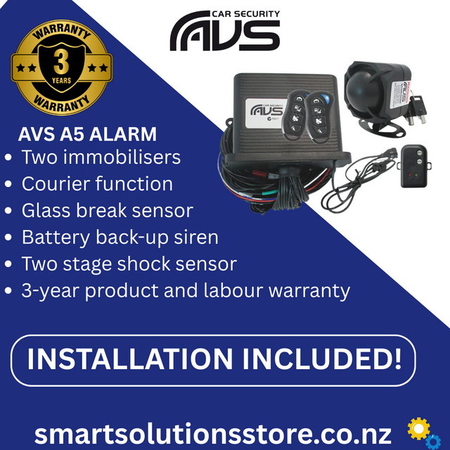 AVS Car Alarm With Installation AVS A5 AS/NZS STANDARDS CERTIFIED ALARM/IMMOBILISER is backordered and will ship as soon as it is back in stock.