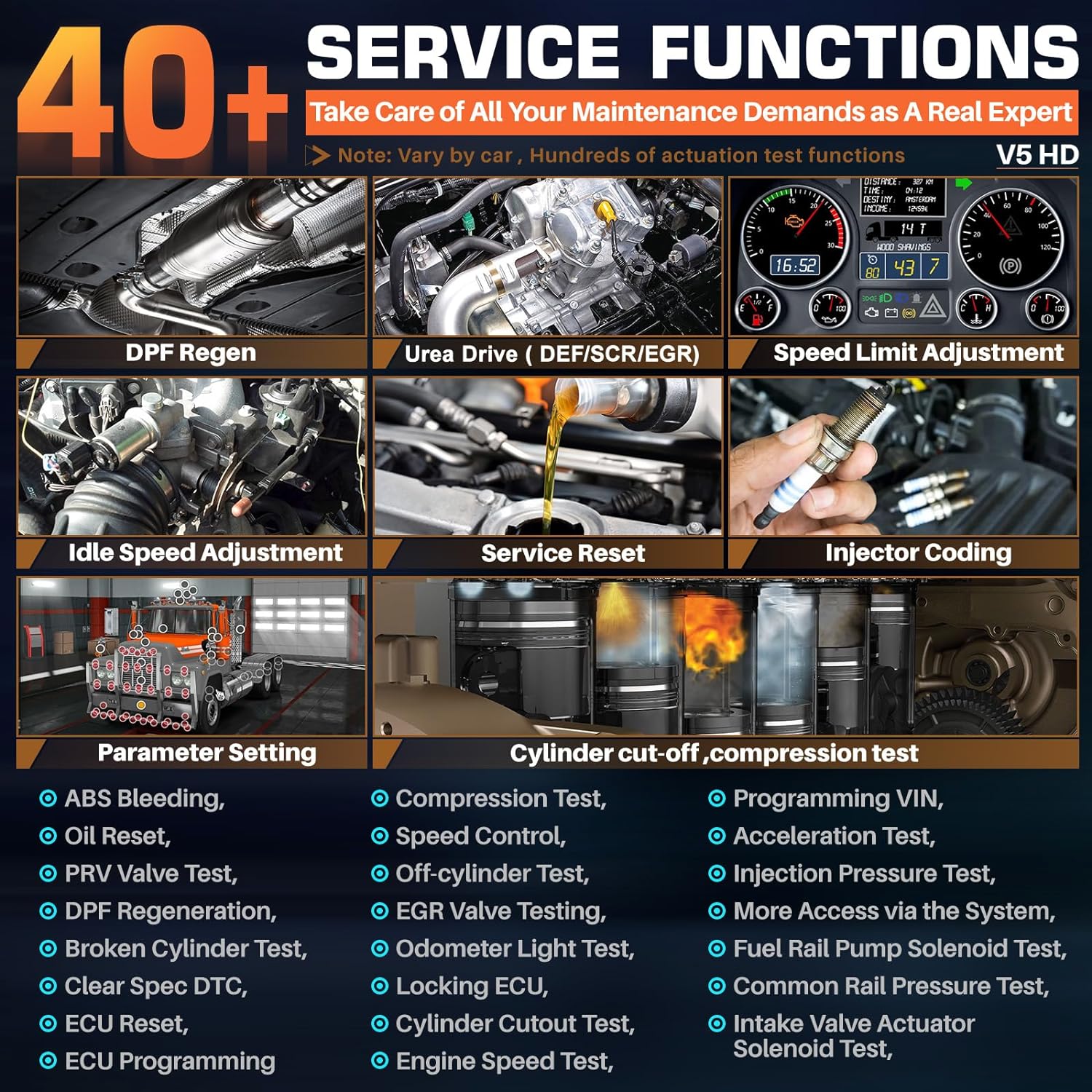 ANCEL V5 HD Heavy Duty Truck Scanner Bidirectional Diesel Scan Tool 40+ Reset Functions